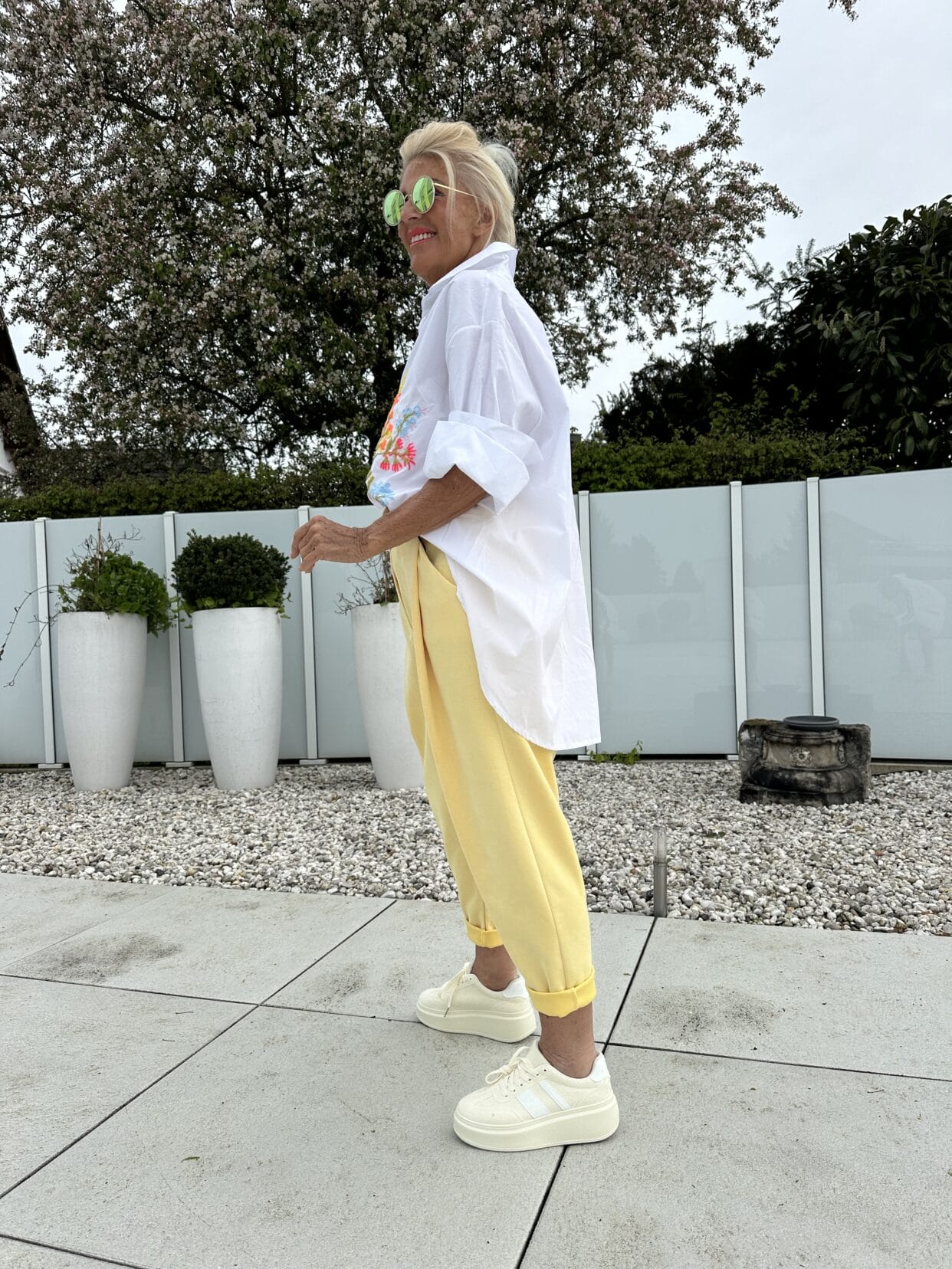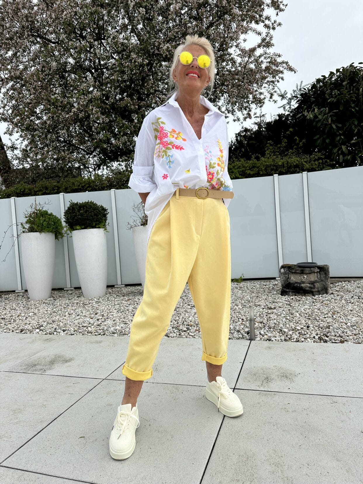 Blouse en coton blanc avec des broderies florales aux couleurs vives.
