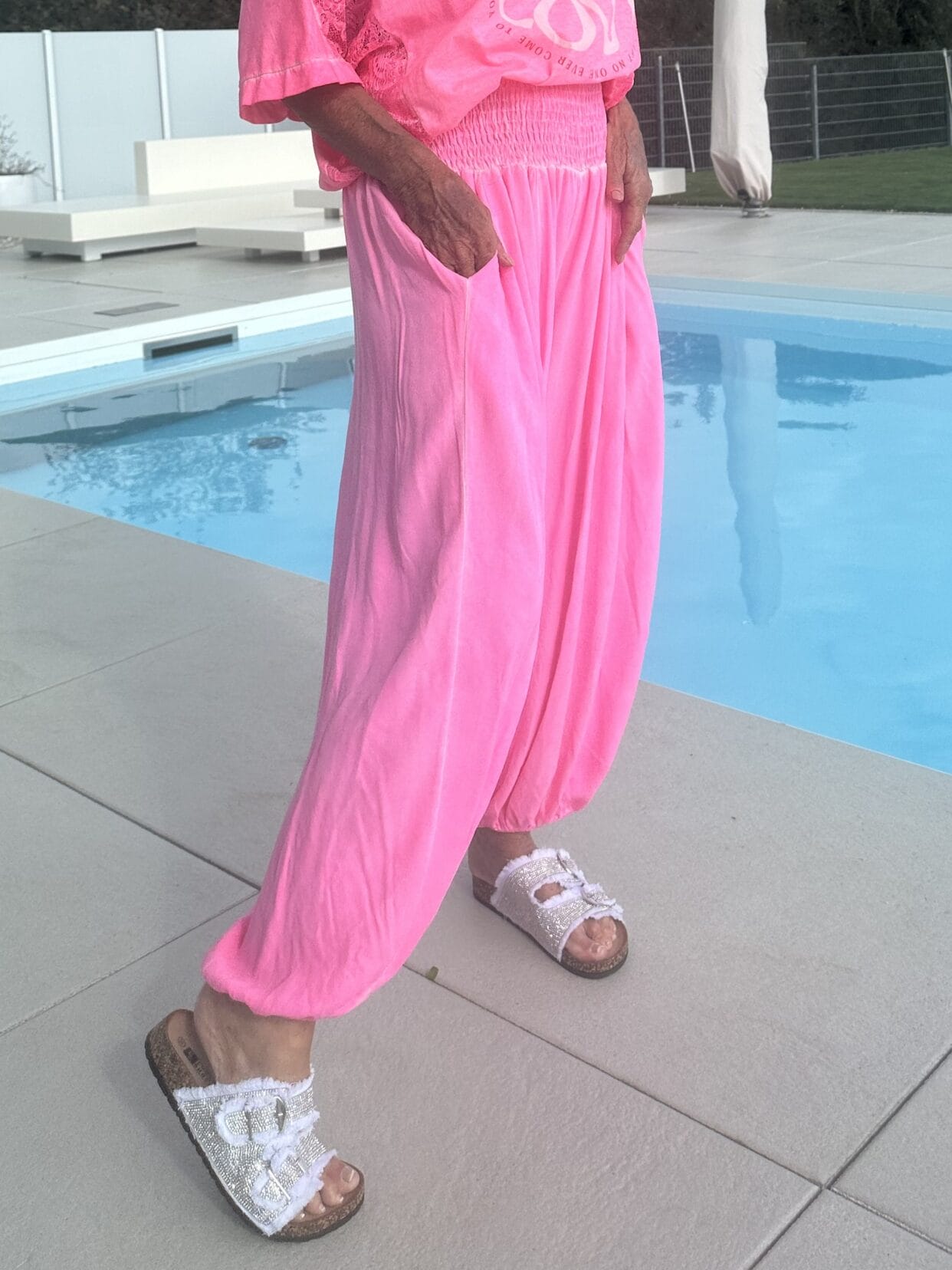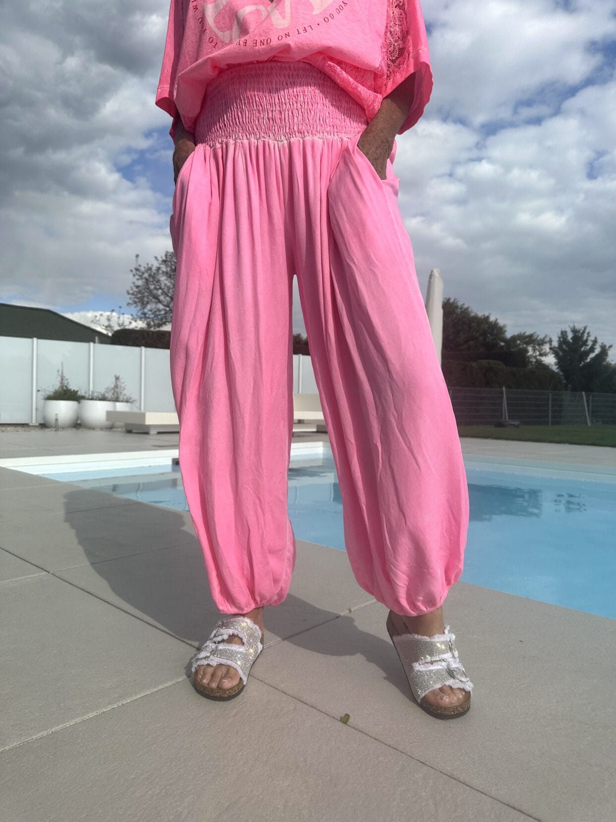 Pantalon bouffant léger et uni avec une large ceinture froncée.