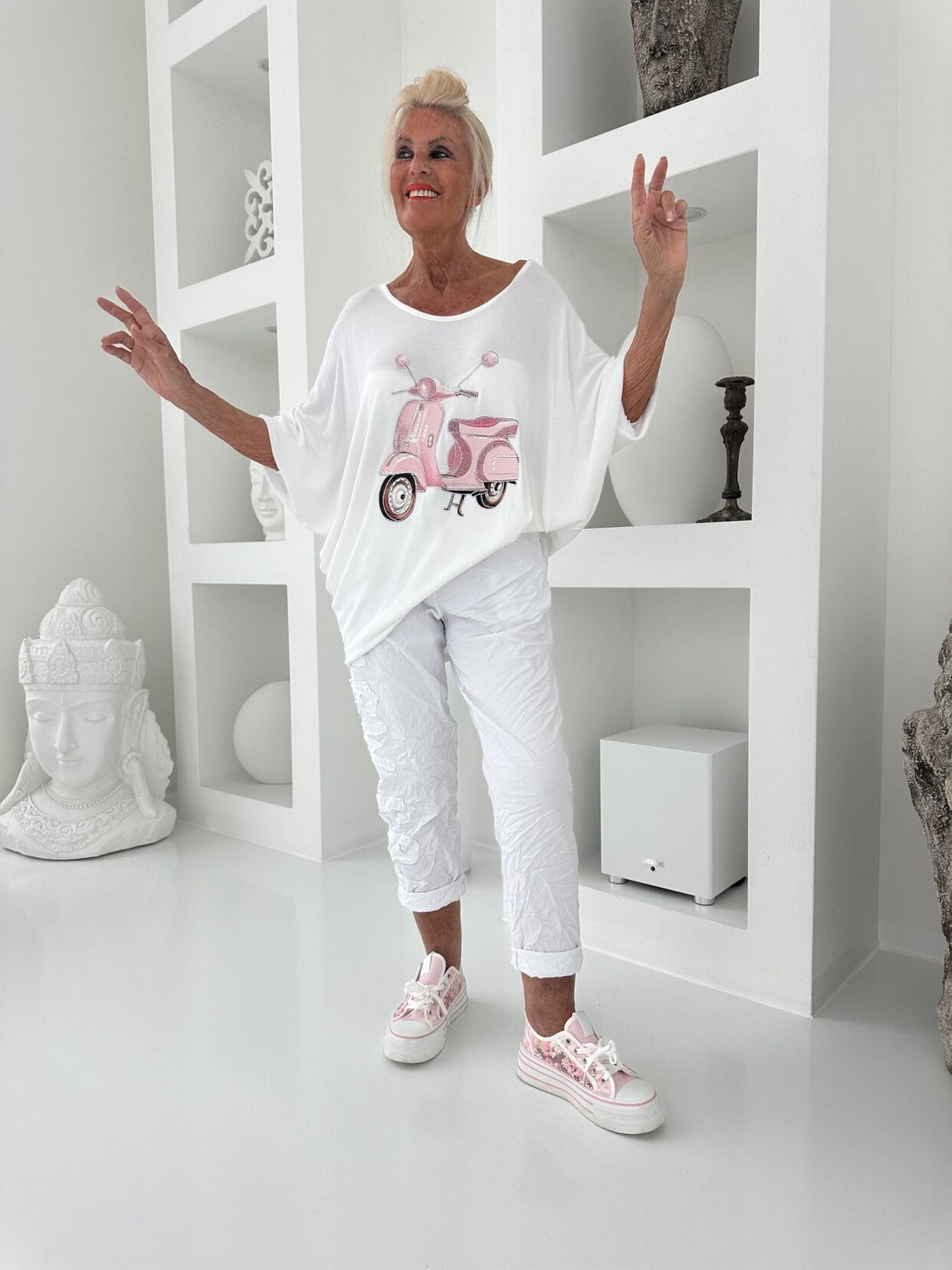 Pull oversize léger uni avec motif scintillant de scooter en 2 couleurs.