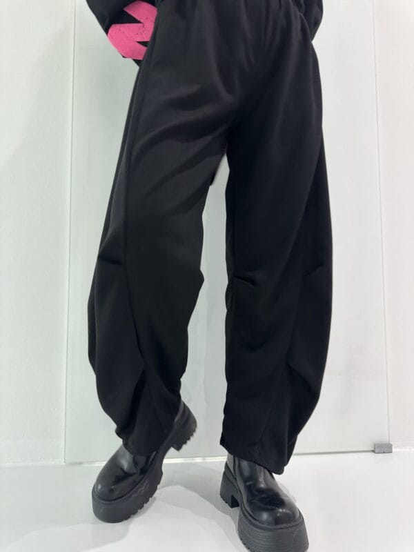 Leichte, schwarze Schlupfhose mit weitem Bein und beigem, mit Copenhagen bedrucktem Tunnelzugband.