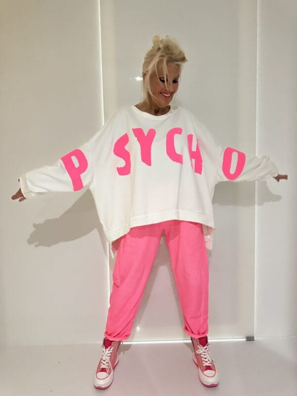 Leichter Kuschelsweater mit knalligem Text-Motiv in drei Farben.