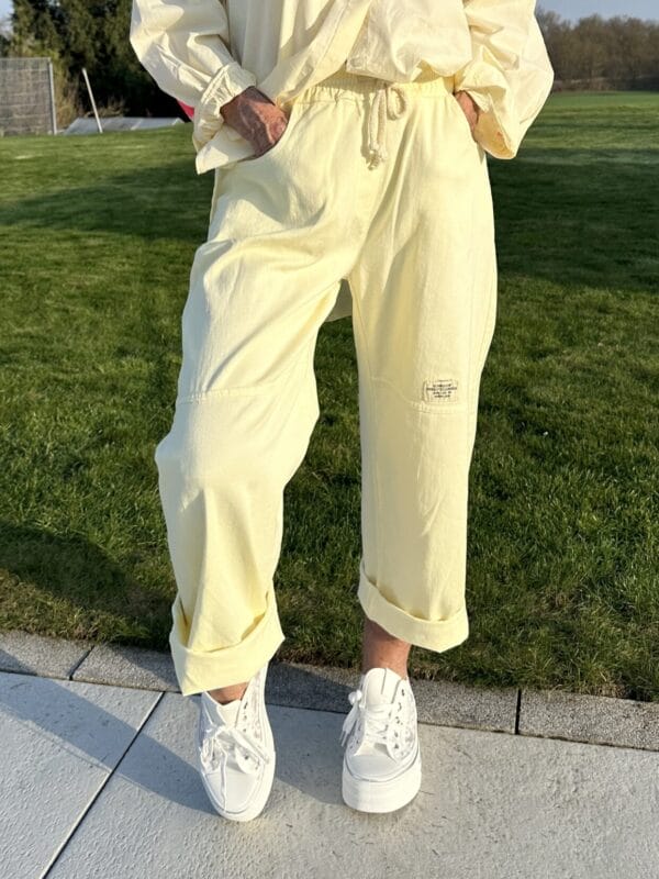 Leichte Frühjahrs-Baumwollhose mit weitem Bein in vielen, teils frischen Farben.