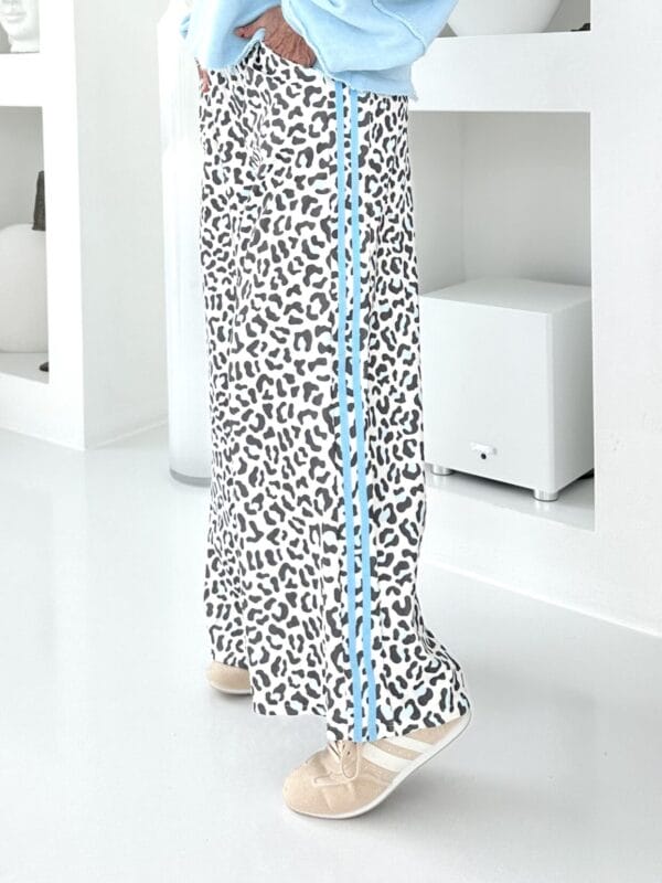 Schlupfhose im Animal-Look mit farblich angepasster Glitzer-Fünf in 4 Farbstyles.