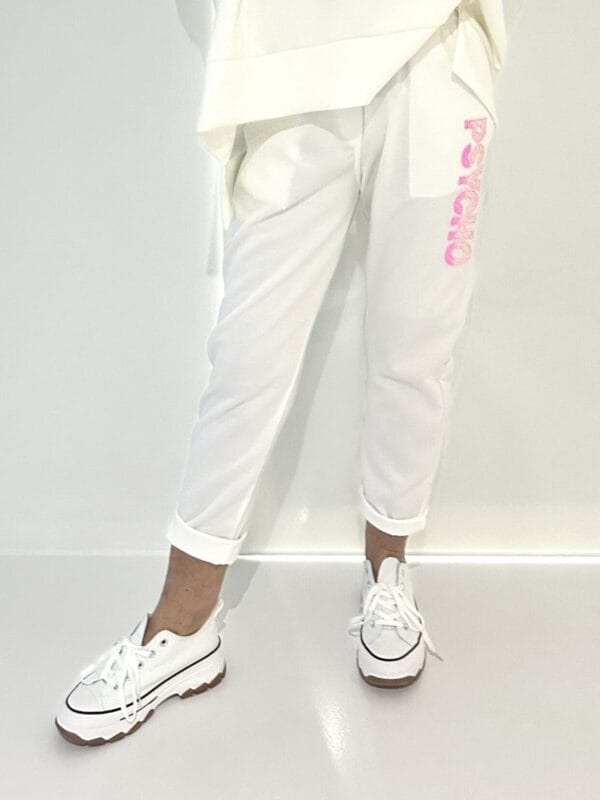 Leichte Schlupfhose in Weiß mit knallig-pinkem Tunnelzugband. Jetzt auch in Silbergrau!