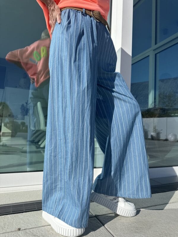Hellblaue Jeans mit seitlichen Streifen.