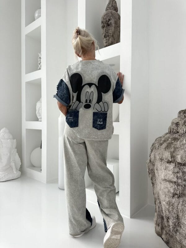 Sportlich-modischer Zweiteiler bestehend aus einem Oversize-Kapuzen-Sweater mit farbigem Motiv sowie einer Schlupfhose mit XL-Taschen und Tunnelzug + Streifen an beiden Teilen.