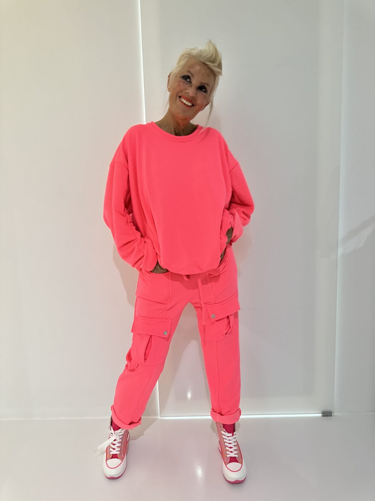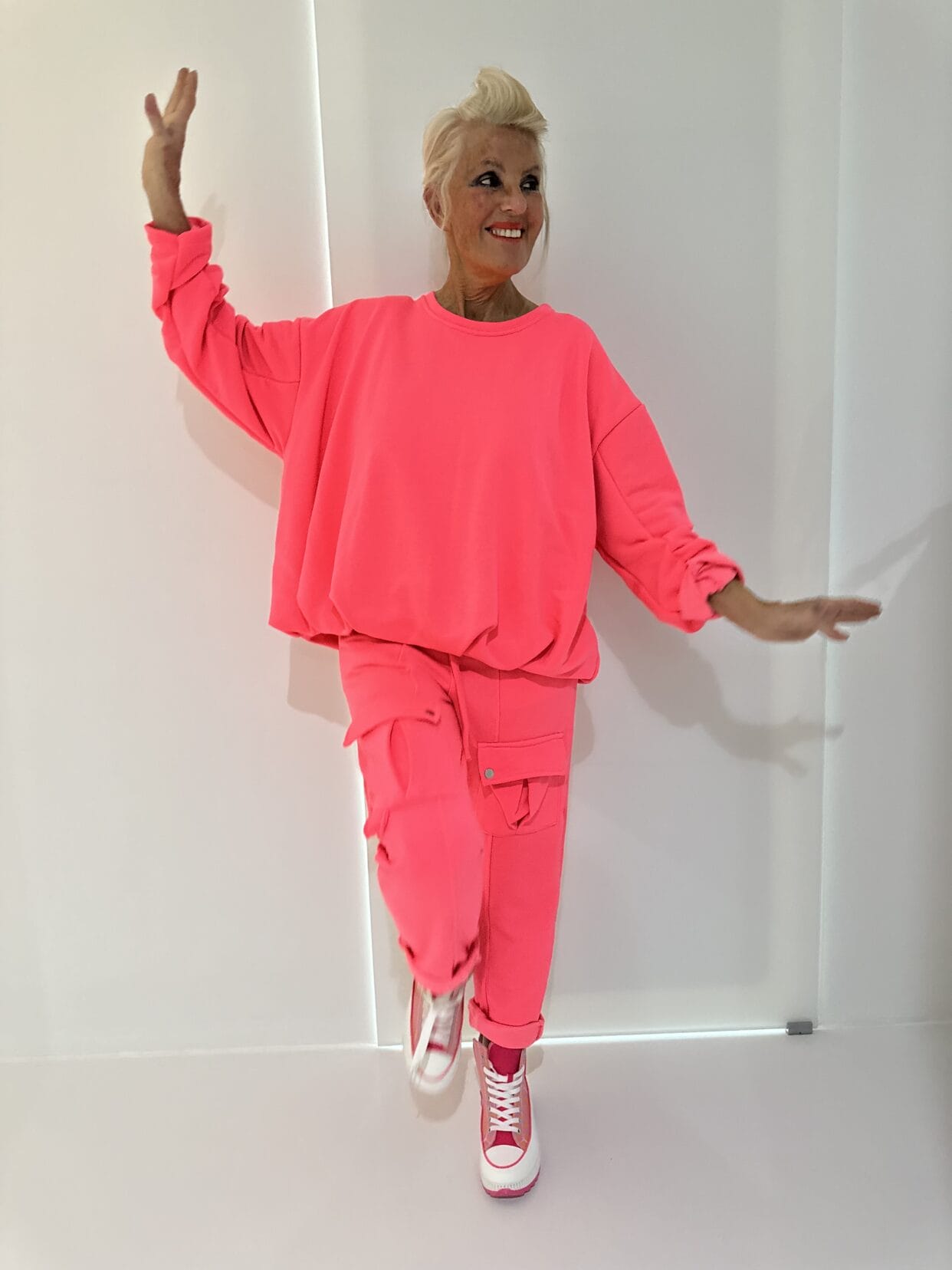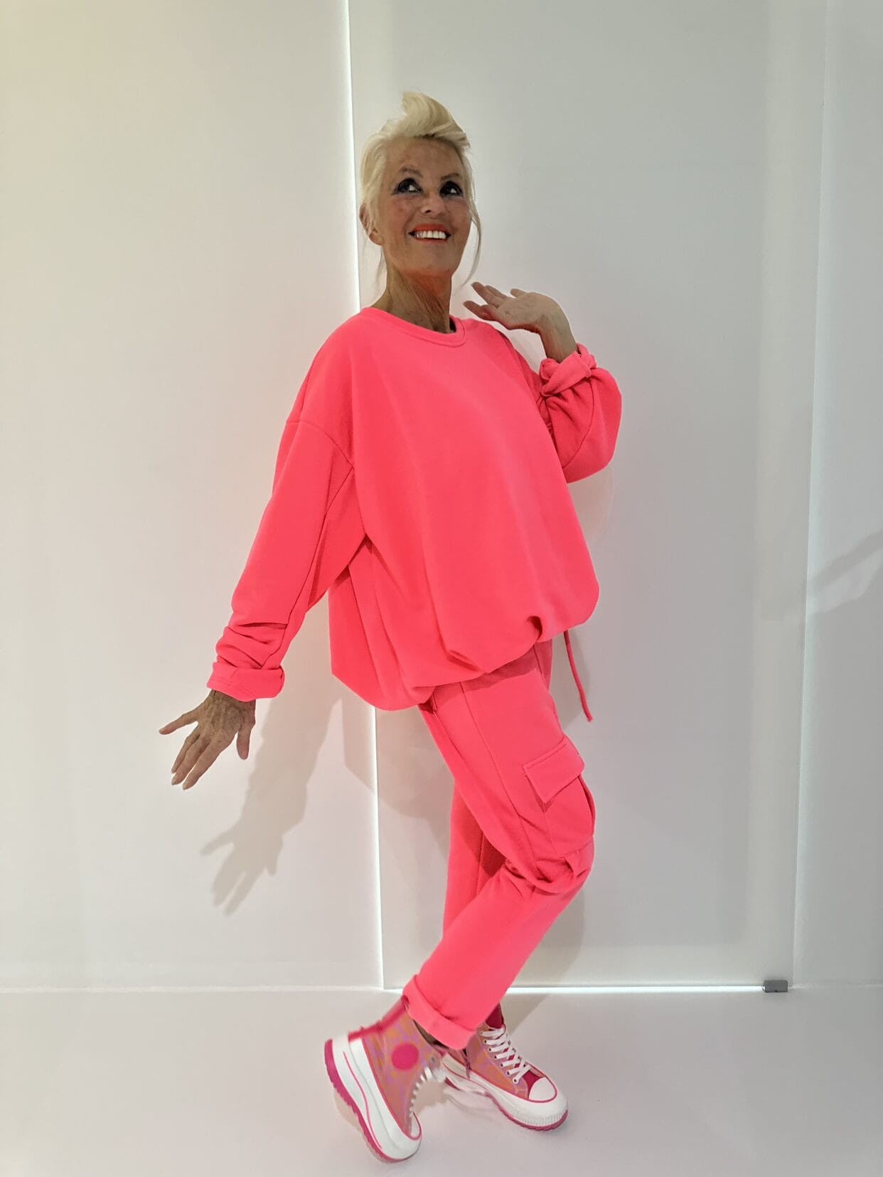 Sportlich-modischer Zweiteiler in knalligem Pink.