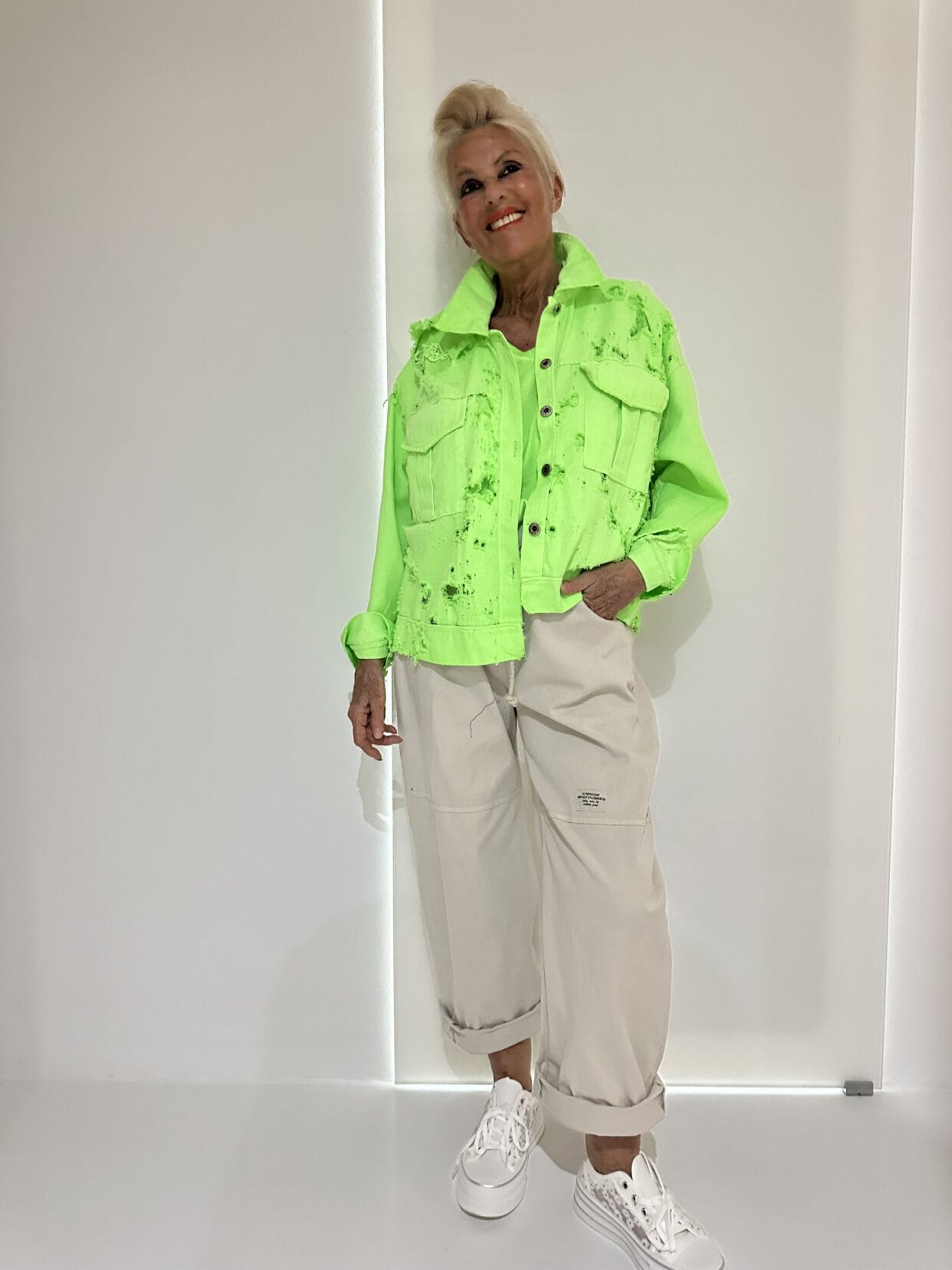 Endlich da! Stylische, kurz geschnittene Jeansjacke im Used-Style.