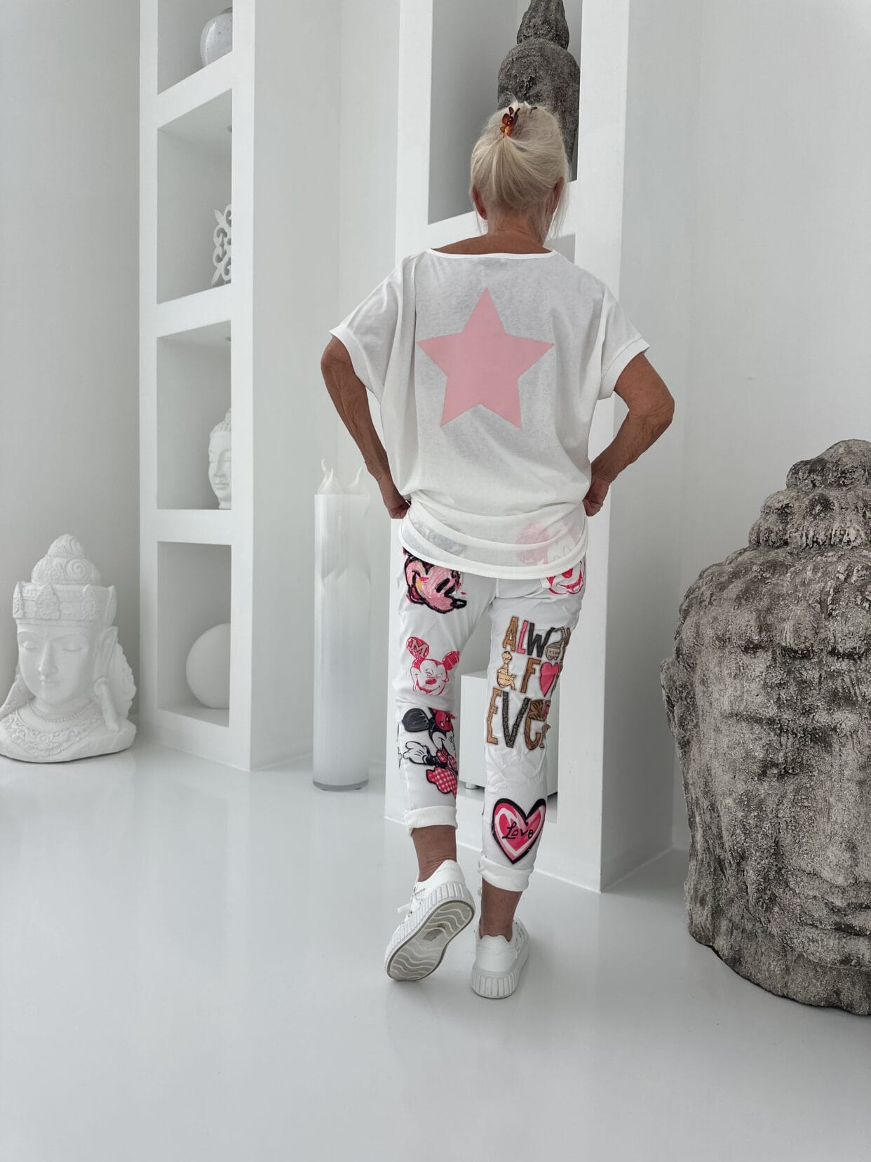Leichtes Kurzarm-Shirt mit Glitzer-Tasche auf der Brust und einem Stern-Motiv auf dem Rücken.