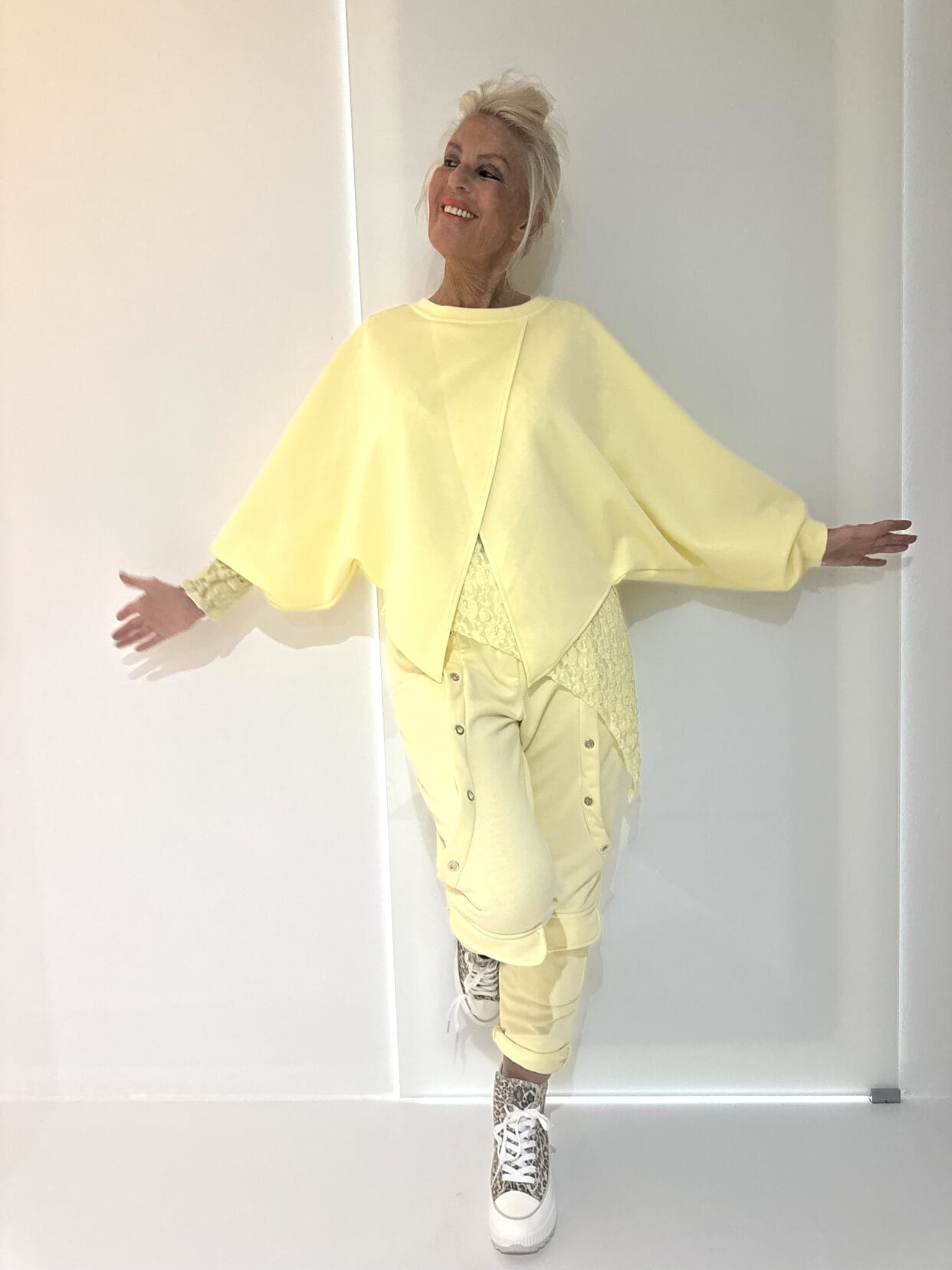 Leichter, vorne spitz zulaufender Überwurf mit separatem, seitlich verlängertem Spitzenpulli.